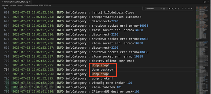匹配关键词“Upnp stop”,查找关闭链接记录。