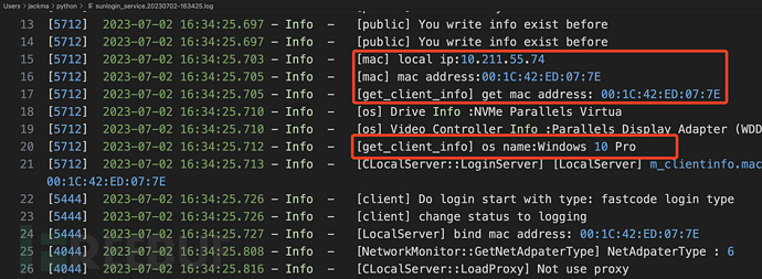接下来是以sunlogin_service.+时间命名的文件,同样也是获取本地的IP、MAC、主机名等信息: