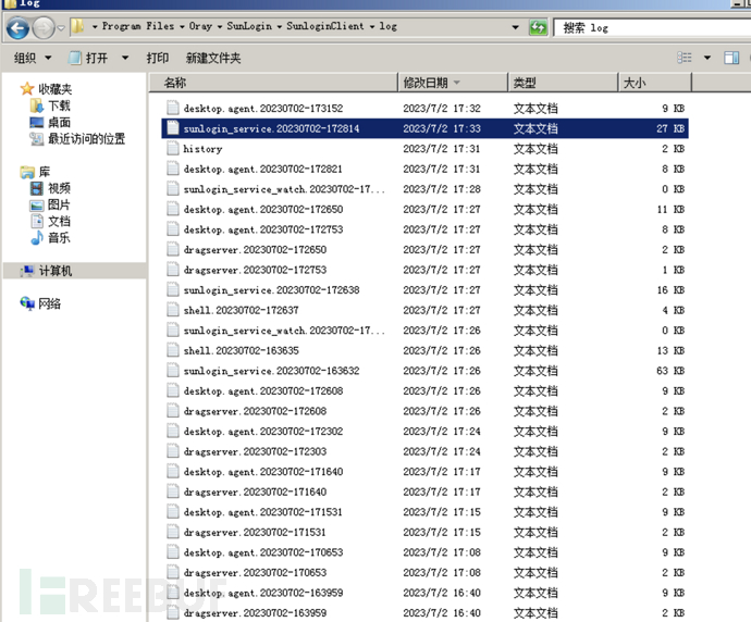 上图分别是免费源码下载本机控制端日志和被控端日志文件目录结构。首先对本机控制端日志(以sunlogin_service.+时间命名)文件进行分析: