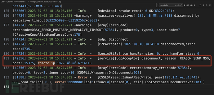 直接在原始日志中日志匹配“remote ip”,可以看到控制端的主机出口IP地址。