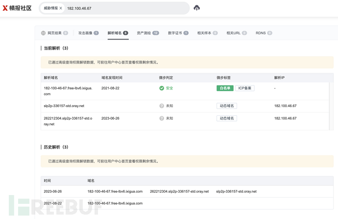 端口为4118的IP地址则为向日葵相关域名的解析地址,可忽略。如果不放心,可以使用情报平台的IP解析域名功能进行确认。