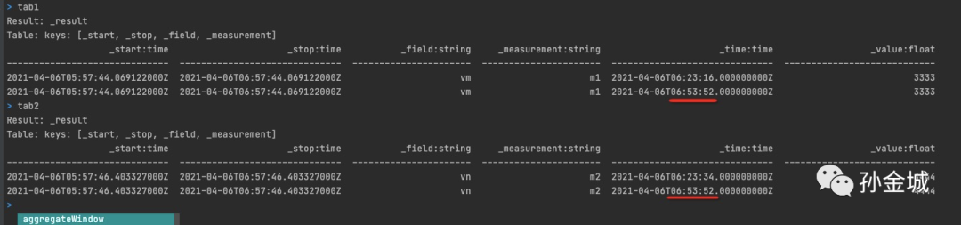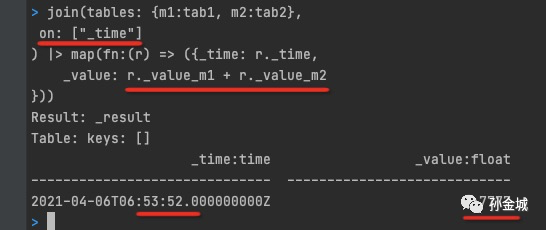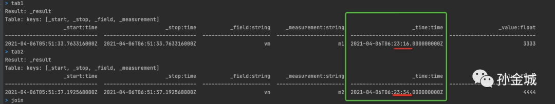 _value: r._value_m1 + r._value_m2}))1.2.3.4.5.上面的on表示JOIN的条件,但是我们发现,tab1和tab2中时间字段并不相同,如下: