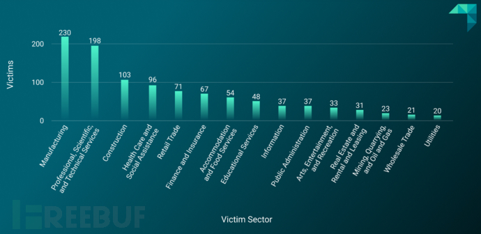 1.目标地区毫不意外,美国仍然是最大的攻击目标,其次是加拿大和英国。英语国家可能被攻击者认为更有经济能力支付赎金,也有可能是与俄罗斯利益相关的勒索软件团伙存在民族主义驱动。b2b信息网