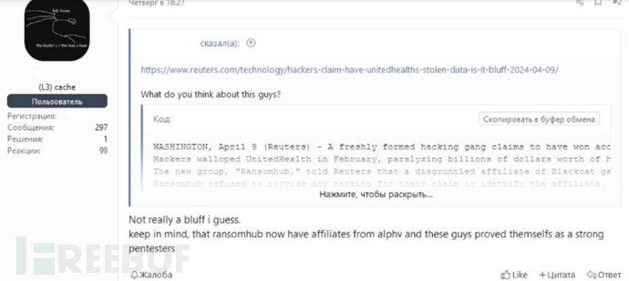 ALPHV 于 2024 年第一季度在数据泄露网站上发布了可能是软件虚假的执法取缔声明,但各方都认为攻击者是态势为了诈骗附属公司从 UnitedHealth 的 Change Healthcare 部门勒索的 2200 万美元赎金。此后,部分 ALPHV 成员可能已经转投其他勒索软件团伙(包括 2024 年 2 月出现的 RansomHub 勒索软件团伙)。