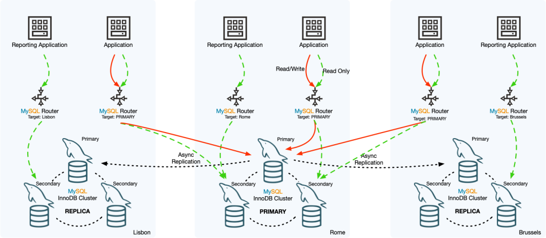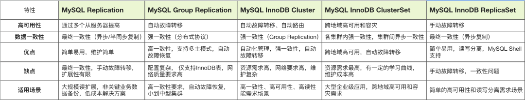 适用于需要跨地域部署和高可用的场景,如全球分布的业务系统、大型企业的多数据中心部署等。5. MySQL InnoDB ReplicaSet