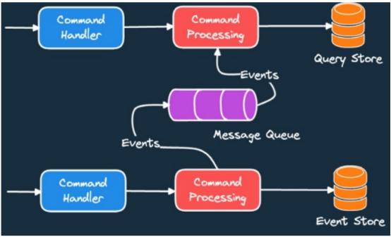 跨团队的开发人员需要协调表的模式更改。当多个服务试图访问相同的数据库资源时,可能会出现运行时冲突。3.CQRS和事件溯源在命令-查询-责任分离(CQRS)模式中,应用程序侦听来自其他微服务的域事件,并更新单独的数据库以支持视图和查询。然后,可以从这个单独的数据库中提供复杂的聚合查询,同时优化性能并根据需要进行扩展。