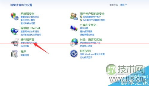 2、统打进入控制面板选项,开文找到【硬件和声音】点击进入