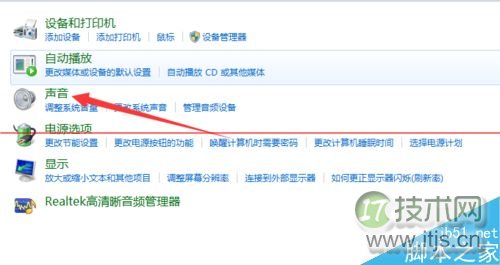 3、时有声音在硬件和声音列表中,该关点击【声音】选项