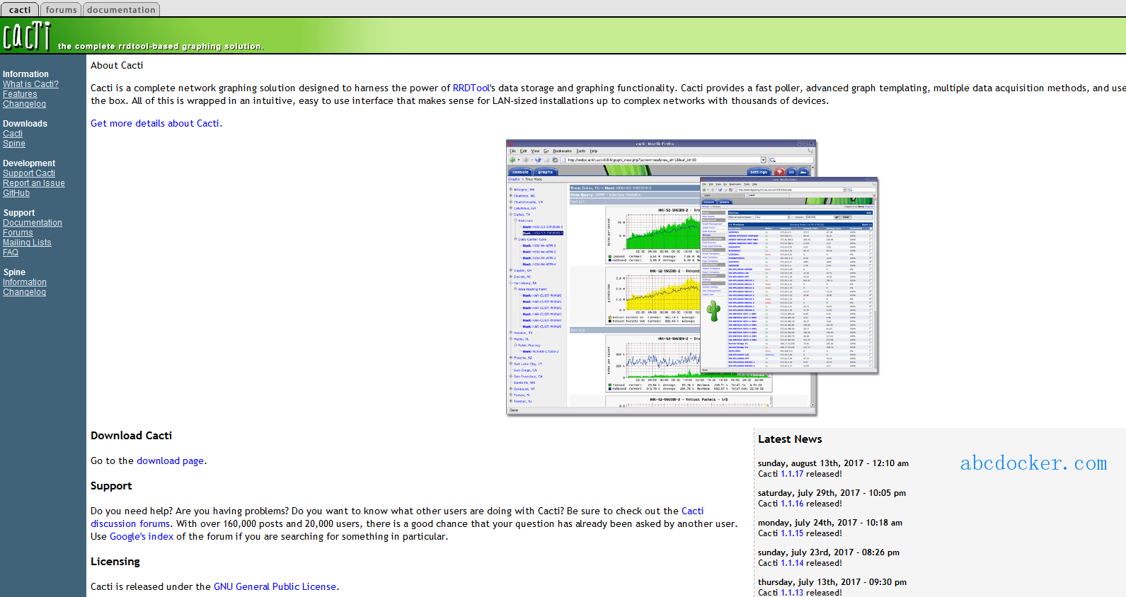 官方网站:http://www.cacti.net