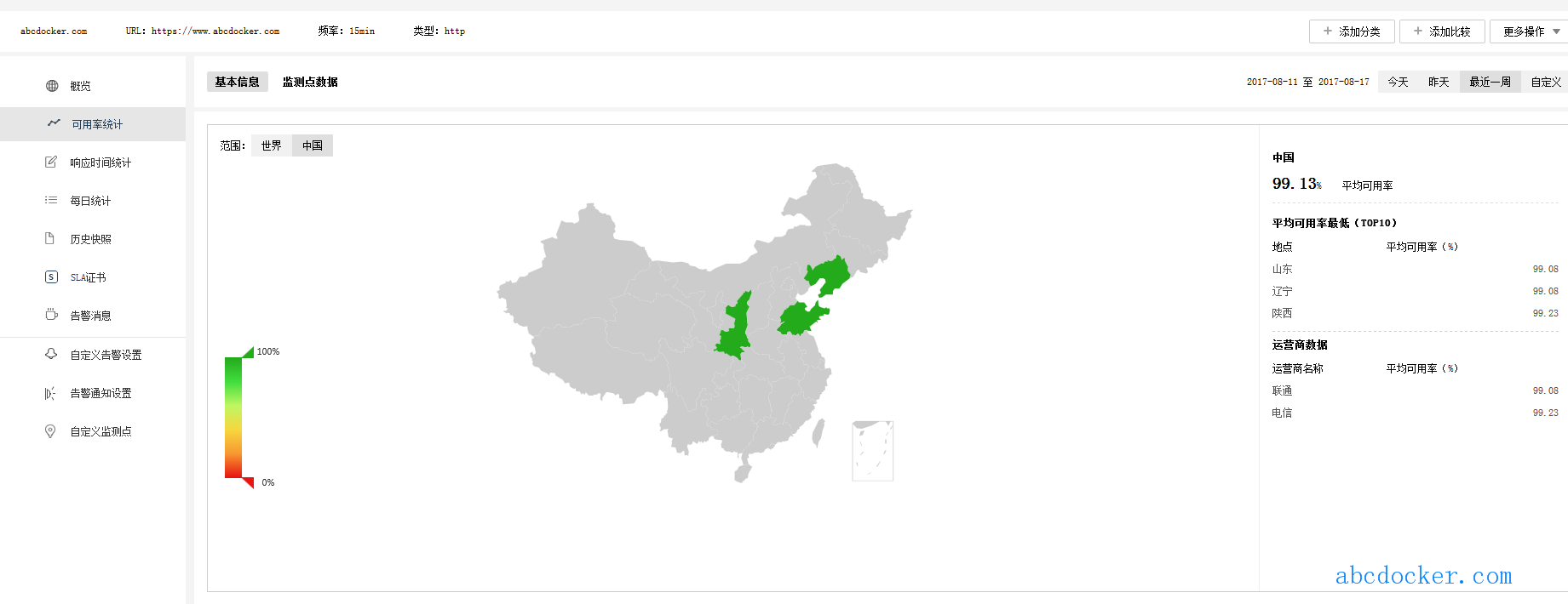 只支持简单的网站和服务器监控,历史数据保留15天,且免费监控点数量仅为四个