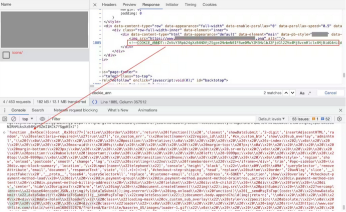 Magecart攻击通常从利用目标网站中的活动漏洞或感染这些网站正在使用的第三方服务开始。而在此次活动中,隐身用页研究人员检测到的术滥所有受害网站都被直接利用,因为恶意代码片段被注入了他们的新型第一方资源中。在某些情况下,恶意代码被插入到HTML页面中;在其他情况下,它被隐藏在作为网站一部分加载的某个第一方脚本中。