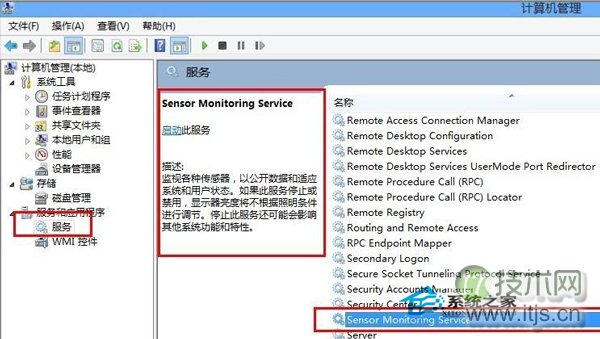 1、鼠标右击计算机图标选择管理选项,在打开的源码下载管理界面那种,展开“服务和应用程序--服务”,然后在右侧窗口中找到并双击“Sensor Monitoring Service”这个服务;