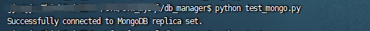 复制from pymongo import MongoClient from pymongo.errors import ConnectionFailure # MongoDB副本集的连接信息 replica_set = "test1" mongo_host = ["192.168.122.36:27017", "192.168.122.36:27018", "192.168.122.36:27019"] # 主机和端口号列表 # 尝试连接MongoDB副本集 try: client = MongoClient(mongo_host, replicaSet=replica_set, serverSelectinotallow=5000) db = client["testdb"] print("Successfully connected to MongoDB replica set.") collection = db[test1] data = {"b":2} result = collection.insert_one(data) except ConnectionFailure: print("Failed to connect to MongoDB replica set. Please check your connection settings.")1.2.3.4.5.6.7.8.9.10.11.12.13.14.15.16.17.18.19.20.21.22.23.运行结果如下: