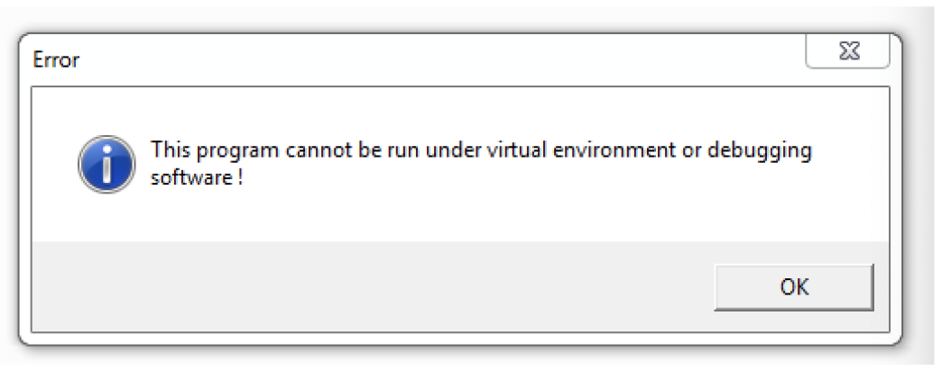 现在我们在PE文件中有了Shellcode的第一阶段,我们可以在动态分析中运行它,看看会发生什么。我们将看到的第一件事是它检测到虚拟机,并在显示消息框后停止执行。此文本在运行时使用4字节XOR密钥解密。