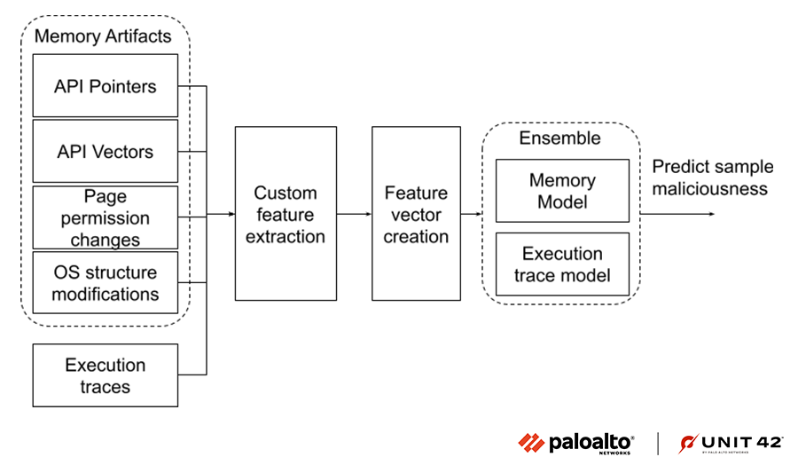 Unit 42研究人员讨论了基于虚拟机监控程序的机器沙盒中基于内存的工件构建的机器学习渠道,该沙盒是学习Advanced WildFire的一部分。可以提高对恶意软件的何检和静护检测精度。
