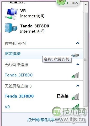 选择一个网络连接,假如是拟路宽带连接的话就选宽带连接,假如是由器无线连接的话就选择无线连接的属性,看下图: