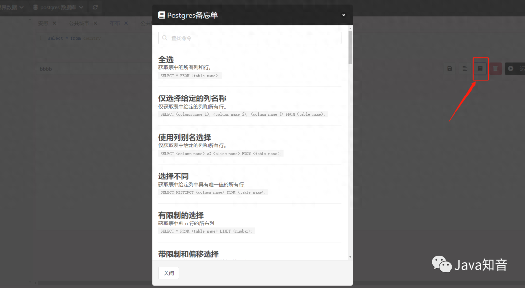 查询备忘单:在 IDE 中搜索和查看查询命令语法。