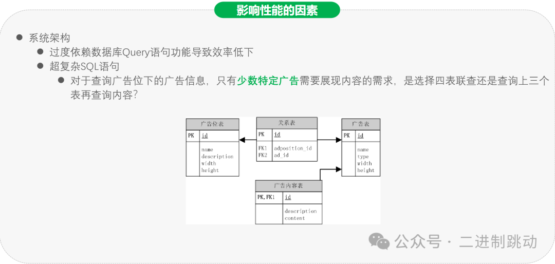 查询设计:复杂的数据术演查询、子查询、库技多表连接等可能会影响性能。数据术演