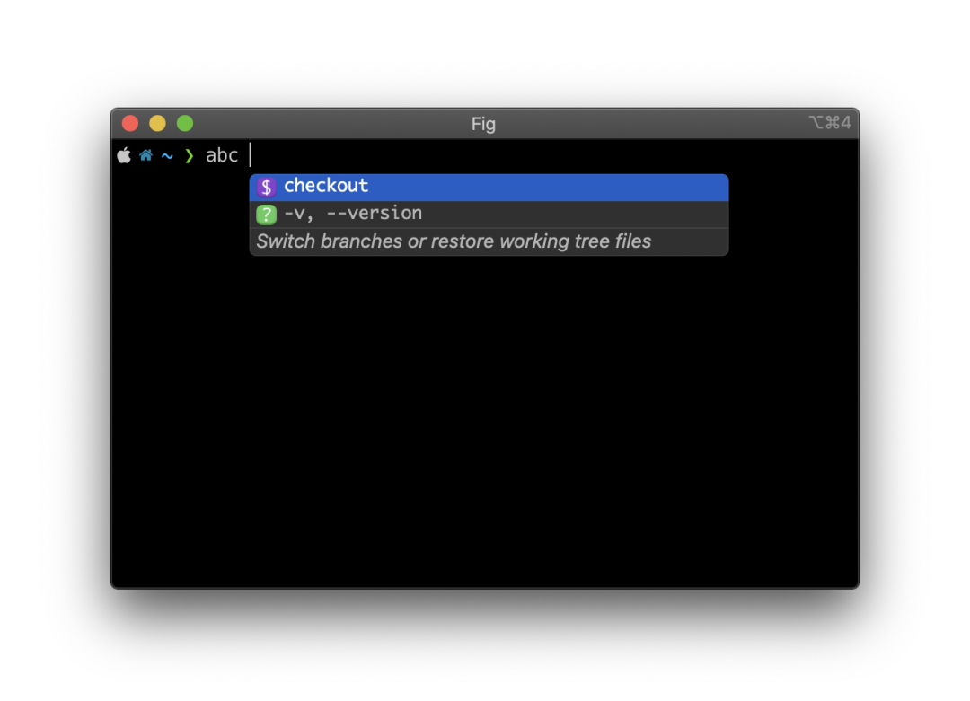 复制const completionSpec: Fig.Spec = { name: "abc", description: "", subcommands: [ { name: "my_subcommand", description: "Example subcommand", subcommands: [ { name: "my_nested_subcommand", description: "Example nested subcommand", }, ], }, ], options: [ { name: ["-h", "--help"], description: "Help for abc", }, ],};1.2.3.4.5.6.7.8.9.10.11.12.13.14.15.16.17.18.19.20.21.22.然后我们可以执行 npm run dev 命令进入开发者模式,启用此模式后,Fig 将在更新时自动重新编译 abc.ts(或任何其他规范),然后 Fig 会从你的开发仓库中加载补全规范。