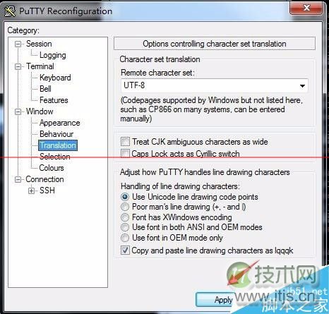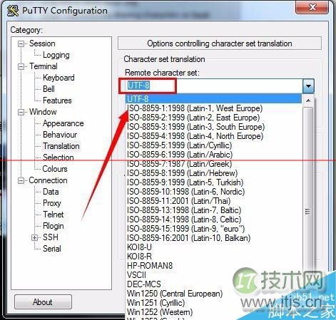 5、进入到设置页面之后,免费信息发布网选择左侧点击【Window】下的“Translation”选项,之后在右侧会看到“Remote character set:”选项。