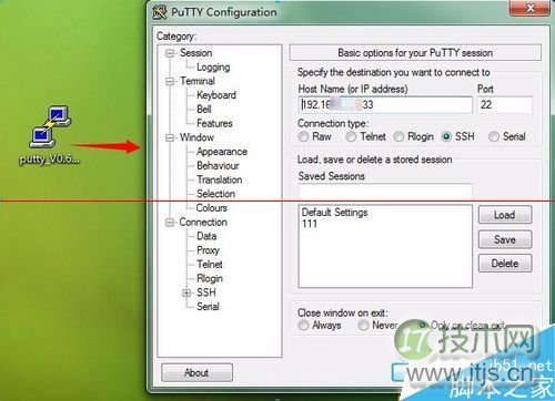 4、之后,进入到putty的设置页面。同时,也可以直接双击putty运行程序,进入到设置页面。