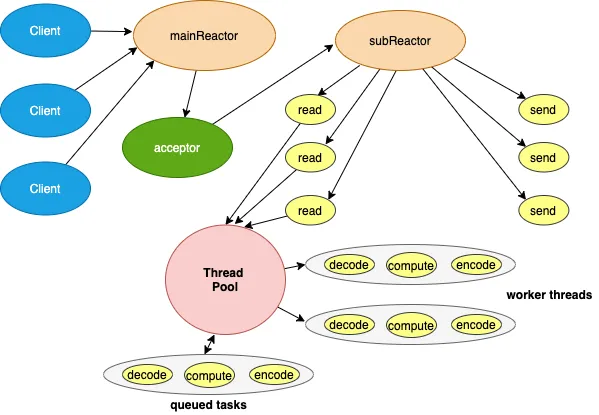 第一次接触到 Reactor 模式,NIOAcceptor 用于处理前端请求,NIOConnector 则用于管理后端的连接,NIOProcessor 用于管理多线程事件处理,NIOReactor 则用于完成底层的事件驱动机制。