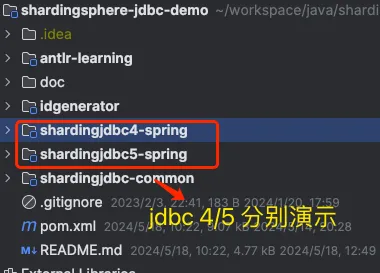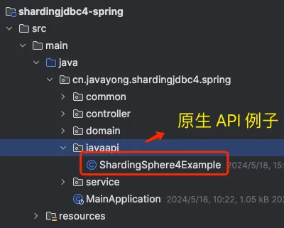 同时,有的同学想使用原生 API 实现分库分表,每个模块里都准备了原生 API 使用的例子 ,方便同学们调试。