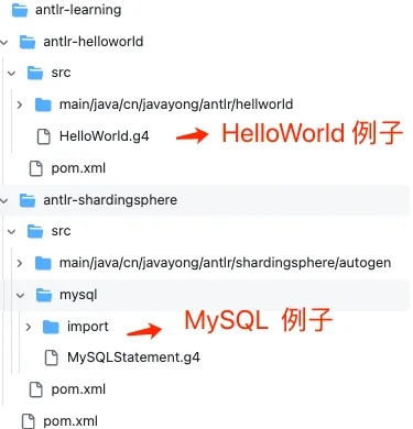 shardingsphere 基于 antlr4 设计了新一代的 SQL 解析引擎,勇哥单独抽出一个模块用来演示: