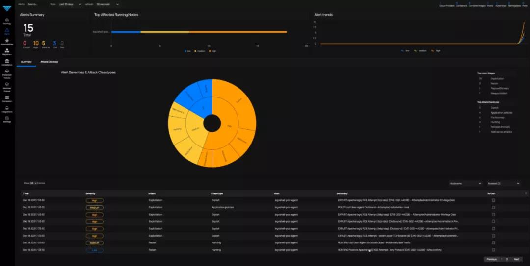 Deepfence ThreatStryker(https://deepfence.io/threatstryker/)则在扩展了 ThreatMapper 的基础上,通过捕获网络流量,识别攻击的特征,洞察攻击者在目标应用中的独特行为,进而通过执行预定义的安全策略,实现立即阻断。