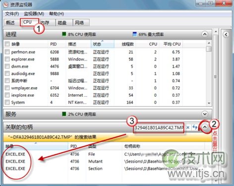 在“资源监视器”对话框中,b2b供应网切换到“CPU”选项卡。点击“关联的句柄”栏右侧的小箭头,将其展开。在搜索栏中输入文件名(若文件名较长,输入部分文件名即可),然后按一下回车键。现在,文件相关的所有进程都在“映像”栏中列出来了。