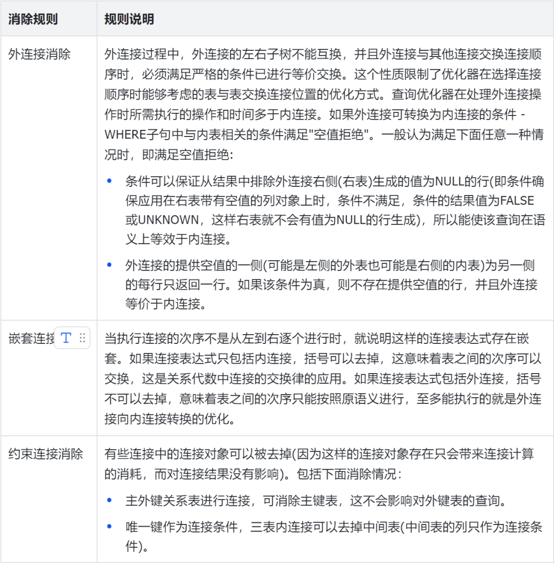 在多表连接的过程中,查询优化器可以找出多表连接的最优查询执行计划,这意味着多个表的最优的连接次序被确定。如果根据表的连接次序确定析取条件的优先判断次序,存在加速判断的可能(处于表达式后面的条件可能不用判断了)。