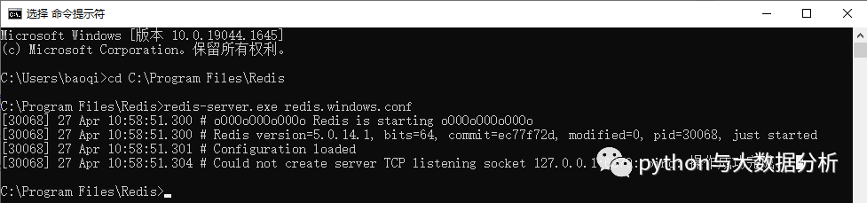# 启动redis失败 Could not create server TCP listening socket 127.0.0.1:6379: bind: 操作成功