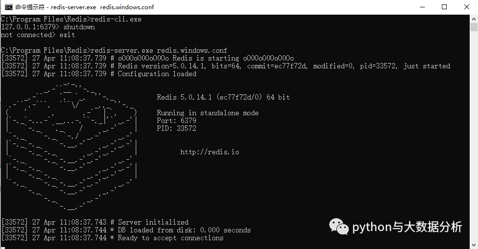 [34752] 27 Apr 11:50:28.112 * Background saving started by pid 20004[20004] 27 Apr 11:50:28.229 # Failed opening the RDB file dump.rdb (in server root dir C:\Program Files\Redis) for saving:数据无效。