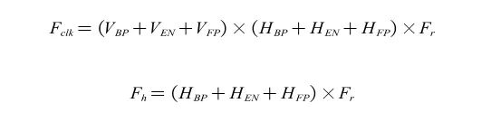 由于图像分辨率及图像的刷新率是计算机决定的,所以,对于一帧视频行频与时钟频率,计算方法如下: