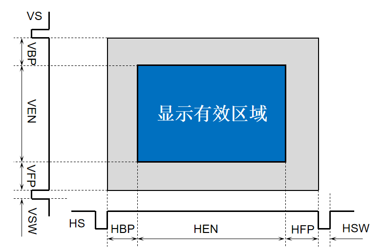 VGA信号的传输采用逐行扫描方式,从左到右依次完成图像的扫描。由于VGA协议最初是为CRT显示器设计,每行扫描结束后需经历行消隐过程,通过行同步信号完成同步;所有行扫描完成后,则需通过场同步信号进行场同步和场消隐,从而开始新的一帧。因此,VGA信号是由RGB信号与同步信号组成的复合信号。