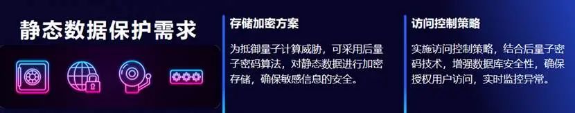 静态数据主要指存储在磁盘、数据库等介质上的数据。为了防止未经授权的访问,需要对静态数据进行加密。在量子计算的威胁下,传统的对称和公钥加密算法可能不再安全,需要引入后量子密码算法。