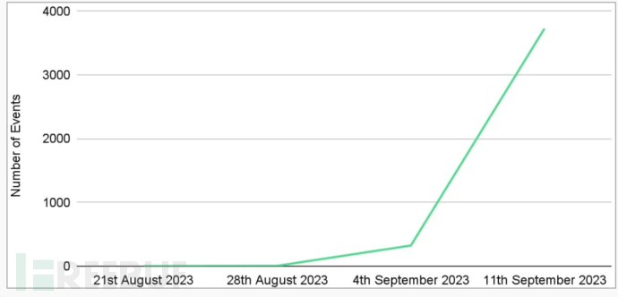 然而,在今年9月12日至19日的一周内,P2PInfect 活动激增,仅在此期间,Cado就记录了3619次访问尝试,增长了600倍。
