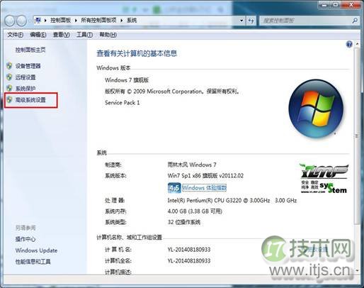 2、图文点击界面左侧的系统效果“高级系统设置”,进入系统属性设置窗口,觉效教程如下图所示:
