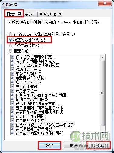 4、b2b信息网在性能选项卡中,点击展开“视觉效果”,将Windows外观和性能设置的单选按钮设置为“调整为最佳外观“,然后依次点击”应用—确定“按钮,如下图所示:
