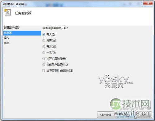 假如选择每天、每周、每月、仅一次的情况,需要更进一步设置自动工作的时间条件。