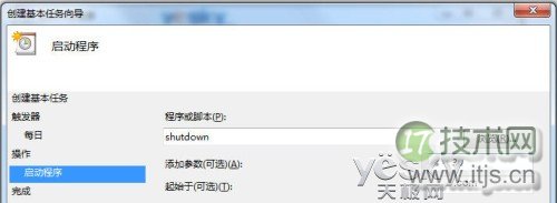 现在进入启动程序详细设置,我们除了输入程序位置或命令外,还可以加入部分程序运行时需要的命令或开始位置。我们在“程序或脚本”一栏填入shutdown,免费源码下载在“参数”一栏可以选择填写。这里我们填写“-s -t 30”是告诉Windows 7系统,我们需要在Windows 7系统启动关机程序时提供30秒的倒计时。