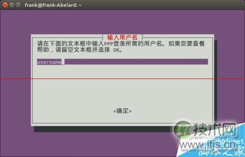 6、到了输入宽带拨号用户账号的步骤了,我们按键盘上的 Backspace 删除键,删除图中文本框中预置的 username,然后输入我们自己的账号。