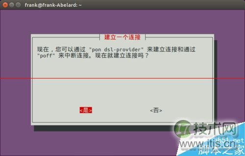 10、在这里,假如你只有有线连接而且要一直使用,那就选”是“,让 PPPOECONF 在开机时自动启动;假如只是像我一样偶尔用用有线,那就选”否“,在需要的时候键入命令,去启动 pppoe 虚拟拨号。