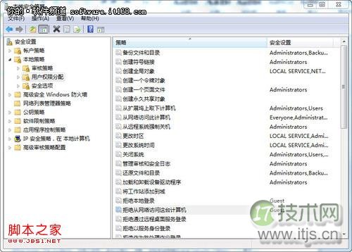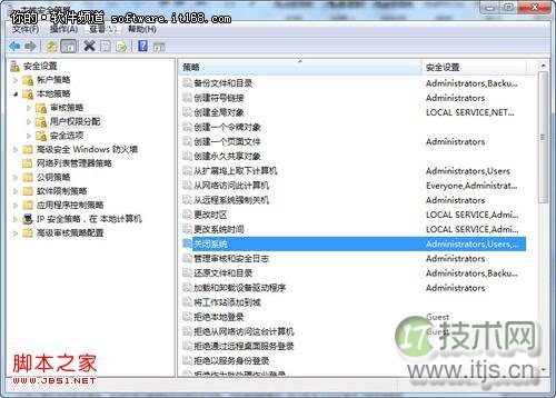 第四步 禁止Guest账户关闭计算机一旦计算机关闭或是重启,Guest账户有获取非法授权的风险。为杜绝这种情况,务必取消Guest账户“关闭该系统(Shut Down The System)”的用户权利。具体过程为:选择“本地安全策略(Local Security Policy)” –>展开“本地策略(Local Policies)” ->双击“用户权限分配(User Rights Assignment)”-> 确保Guest账户的策略没有“关闭该系统(Shut Down The System)”。