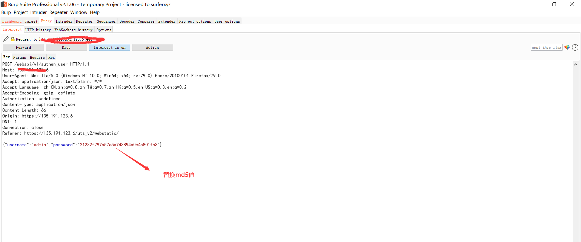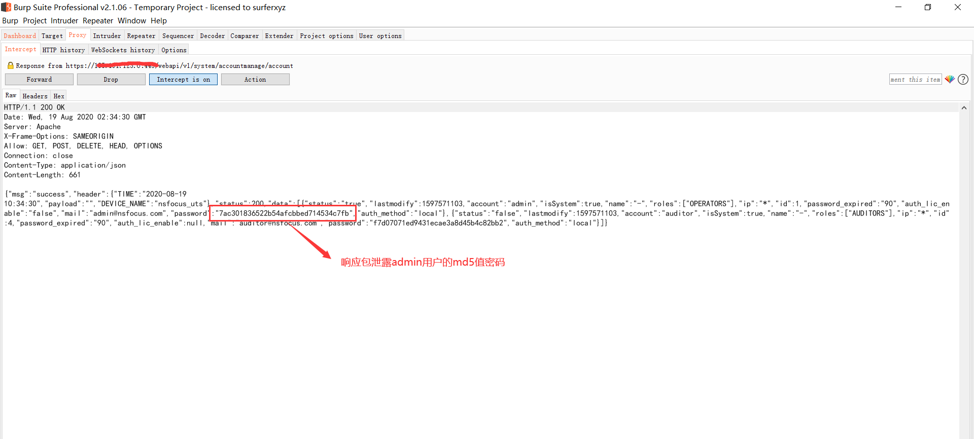 对响应包进行修改,合威将false更改为true的WordPress模板时候可以泄露管理用户的md5值密码