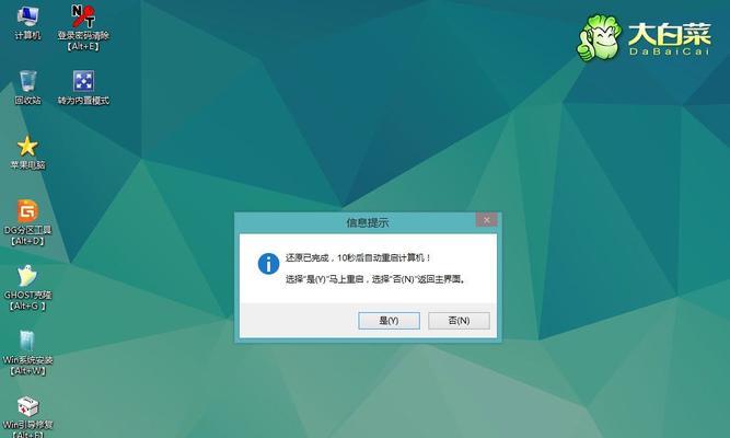 当XP系统安装成功后,大白菜会弹出提示信息,告知我们安装成功。此时,我们可以重启电脑,并进入新安装的XP系统。