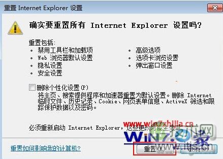 3、重置IE浏览器设置之后,重置会弹出一个窗口,浏览可以根据个人实际情况,源码库看是否要删除个性化设置,然后点击重置按钮,之后重启ie即可生效。