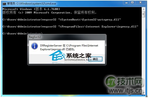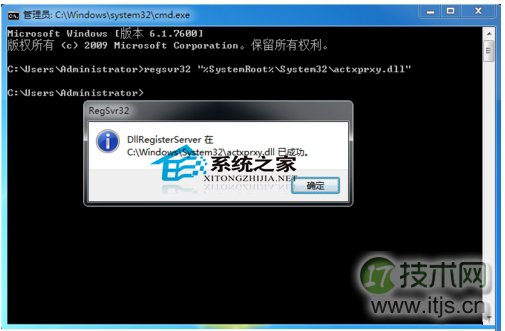 3、在命令行中输入:regsvr32 “%SystemRoot%/System32/actxprxy.dll”