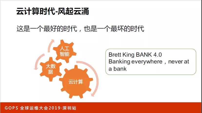 云计算时代的特殊性,云计算、大数据、人工智能最近十年的发展对传统行业的冲击非常大。有人说这是非常好的时代,因为技术飞速发展,对传统企业来说这是最坏的时代。